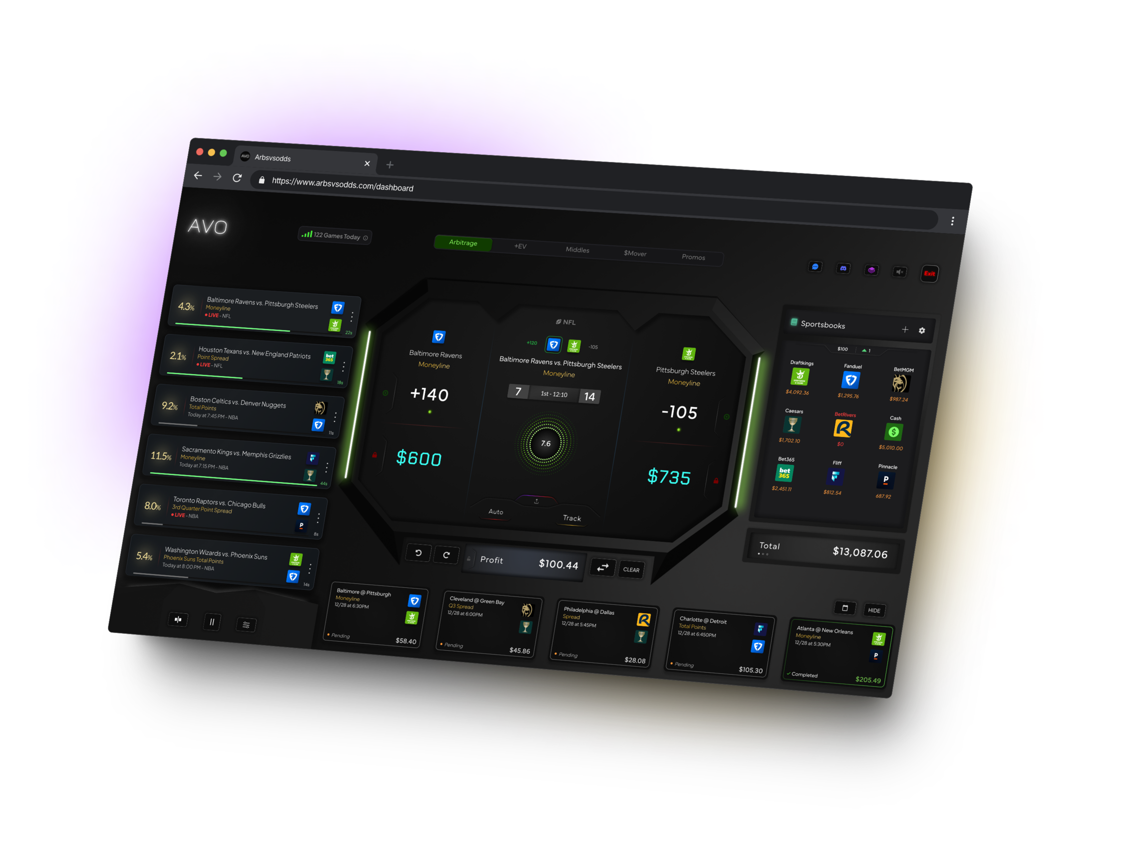 AVO offers a comprehensive view of your balances across all selected sportsbooks, ensuring that you have enough funds for every opportunity.