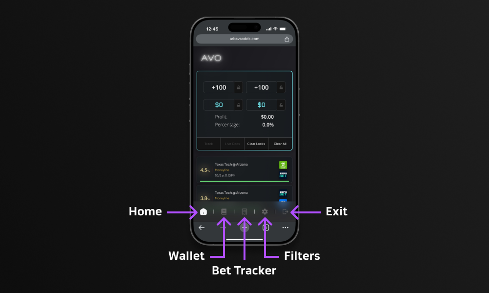 As previously mentioned, you'll want to make sure that you've downloaded all of the mobile sportsbooks apps prior to using AVO Mobile. Additionally, you'll want to signed into the app and letting it run in the background (don't quit the app or else you'll need to login every time you open it).